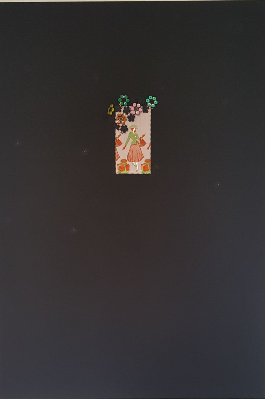 Tobias Kaspar’s (Basel, 1984) pieces reflect on the relationship between art and fashion. The use of materials is key in the use of prestigious fabric replacing the linen of canvas, whilst the subjects are romantic, repeated models. His works are the demonstration of the fleeting borders between art and fashion.